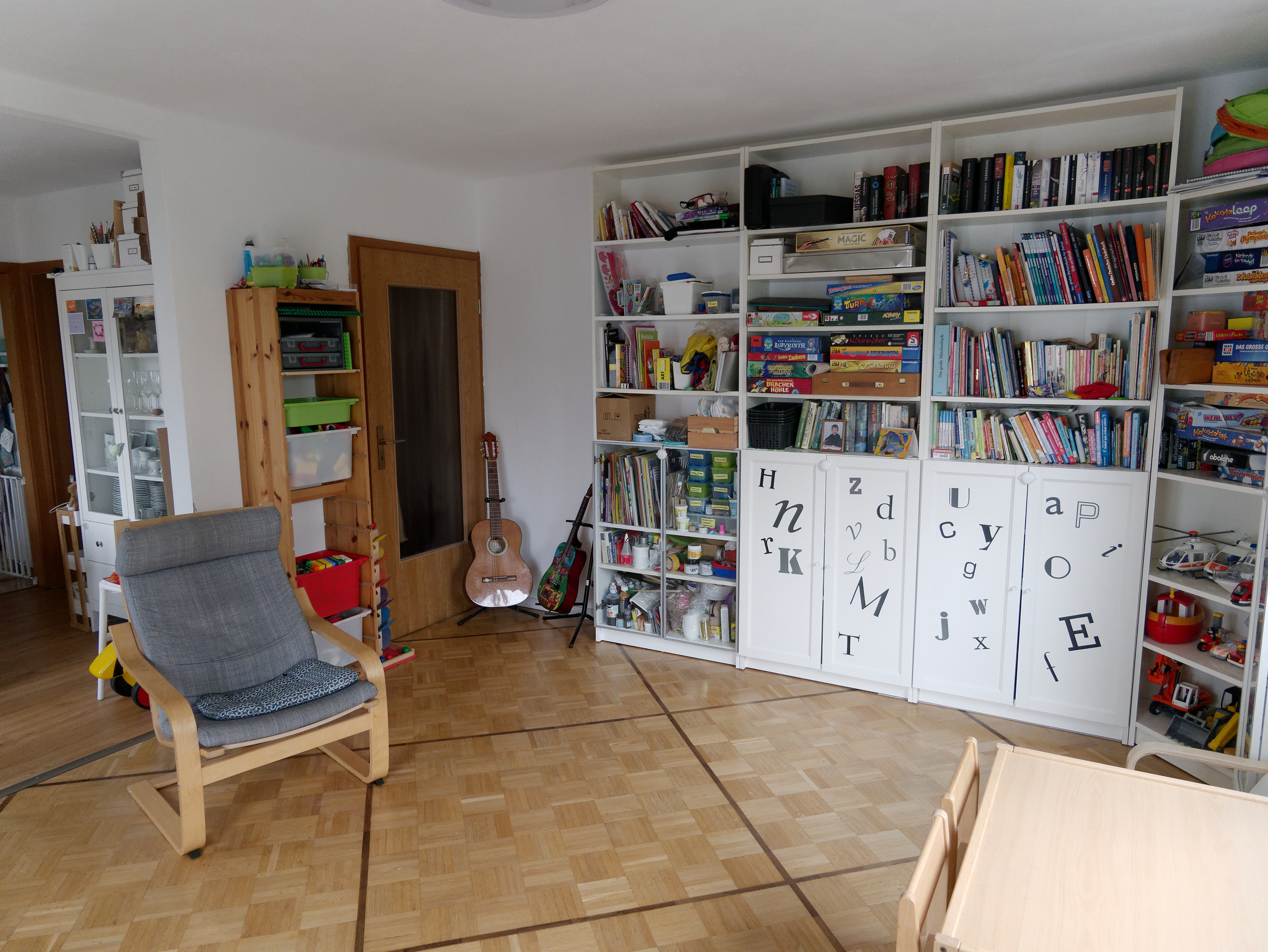 Im Betreuungsraum steht den Kindern vielfältiges Spielmaterial zur freien Verfügung, welches sie während der Freispielzeit nutzen können.